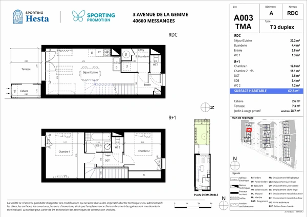 Soit une surface totale de 62,8m2 Soit 299000EUR Prix du parking TTC 24000EUR Prix direct promoteur, sans surcroit pour l' acquereur Nos honoraires sont consultables sur : www.noovimo.fr Les informations sur les risques auxquels ce bien est exposé sont disponibles sur le site géorisques : www.georisques.gouv.fr Je vous invite à me contactez rapidement afin de vous accompagner dans votre projet futur. Votre agent independant conseillère Noovimo inscrit au RSAC de Dax sous le No 849109160 Brenda Scomparin 0640466366 1 - Annonce rédigée et publiée par un Agent Mandataire -